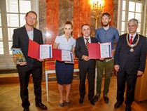 Mit dem NatureLife Nachhaltigkeitspreis wurden: Dr. Maren Lay, Felix Mattl und Steffen Schweizer ausgezeichnet. Die Preisverleihung fand im Rahmen eines Festaktes des DIES ACADEMICUS der Universität Hohenheim im Balkonsaal des Schlosses Hohenheim statt. -