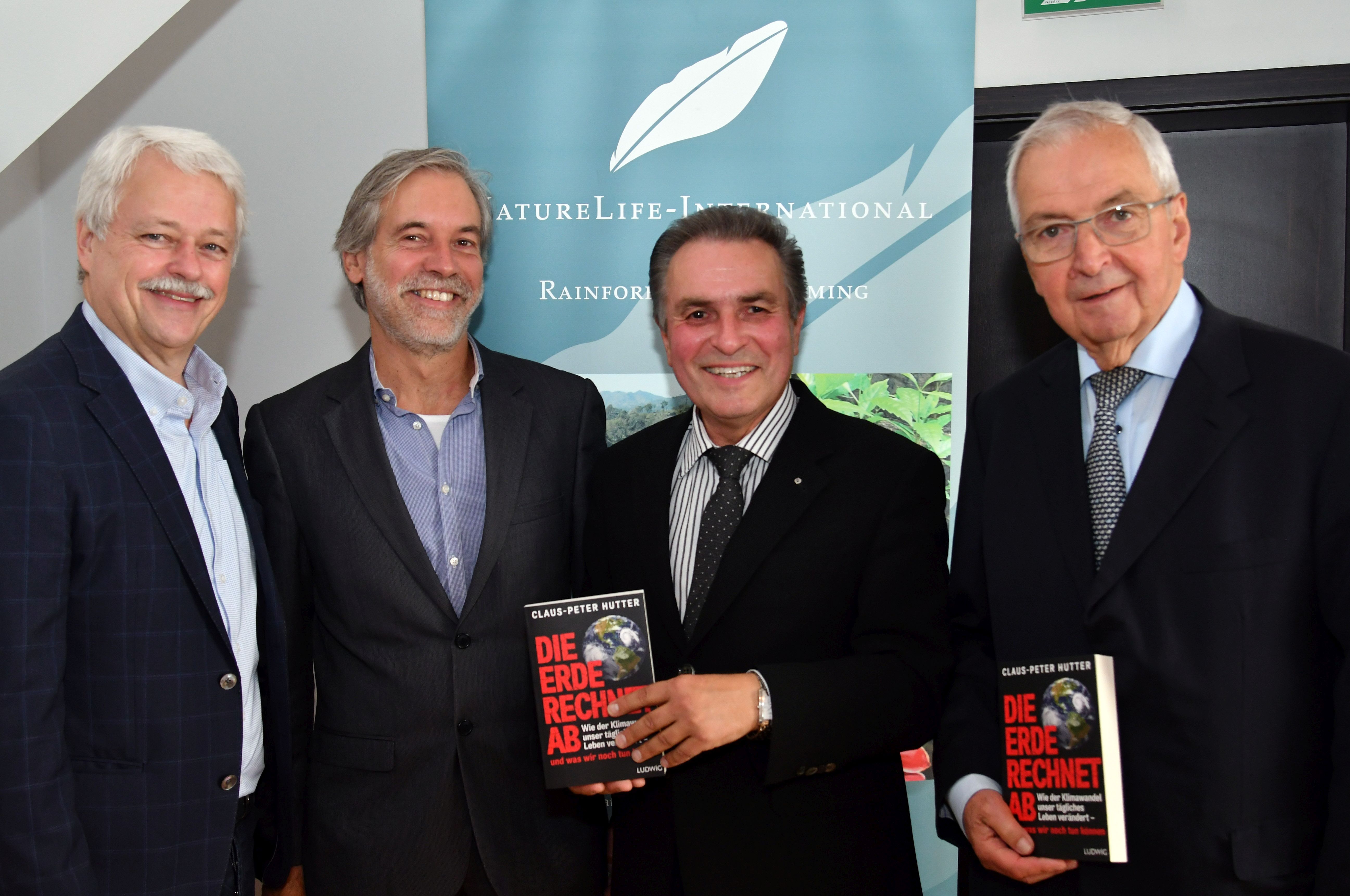 V.l.n.r.: Volker Angres (Leiter der ZDF-Redaktion "Umwelt"), Dr. Christof Schenck (GF Zoologische Gesellschaft Frankfurt v. 1858 e.V.), NatureLife-Präsident Claus-Peter Hutter, Prof. Dr. Dr. h.c. mult. Klaus Töpfer (ehem. Umwelt- u. Bauminister)
