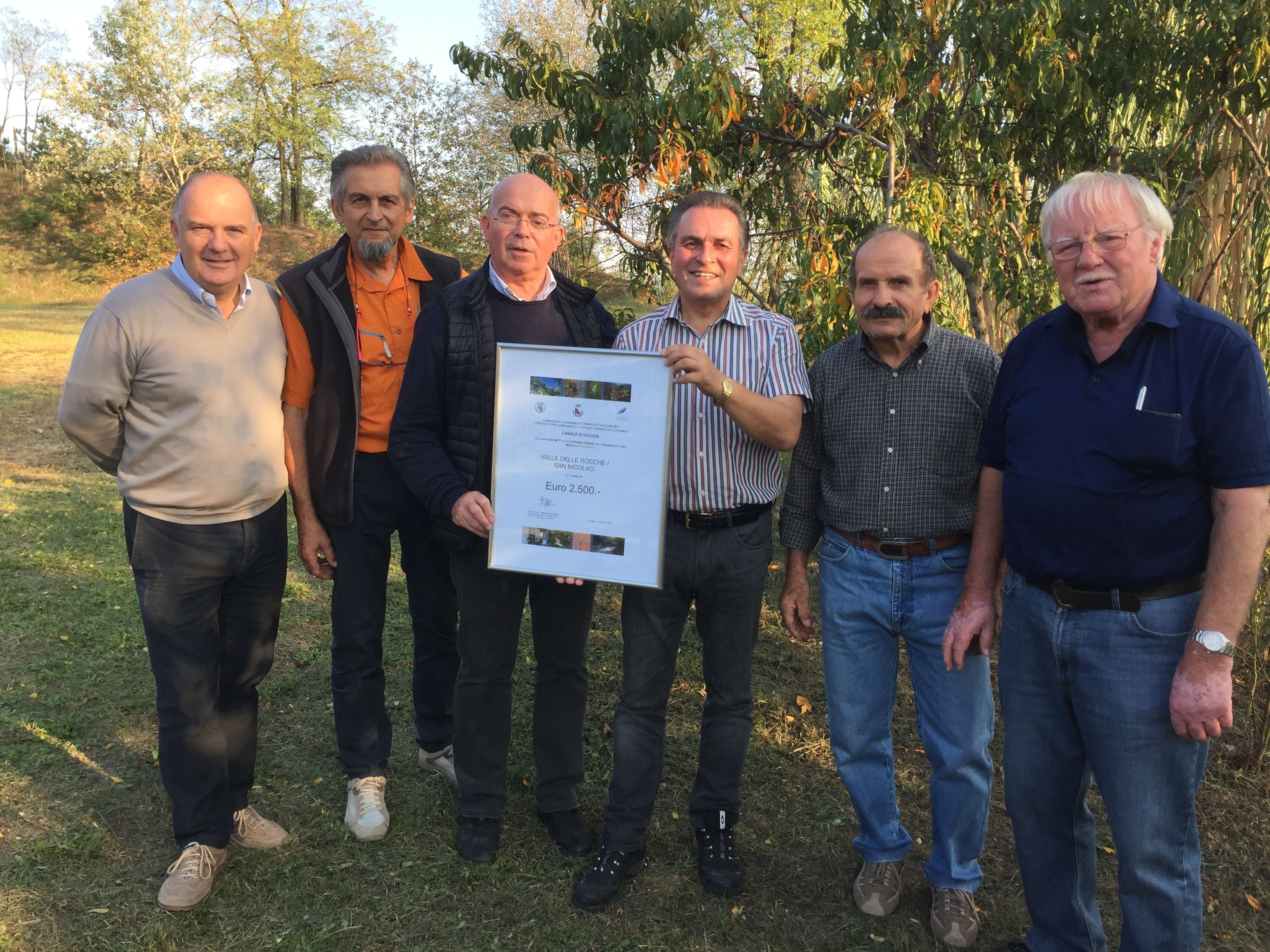 Sersheim / Canale. „Das ist nicht nur ein Beitrag für eine Natur ohne Grenzen, sondern auch ein Zeichen internationaler Freundschaft und Verbundenheit“, so Giovanni Bosio, Vorsitzender der Umweltorganisation Canale Ecologia in der Sersheimer Partnergemeinde Canale im italienischen Piemont. Er erhielt von Claus-Peter Hutter, Präsident von NatureLife-International eine Urkunde über die Förderung von Geländeerwerb zum Schutz des einmaligen Naturparadieses „Valle delle Rocche“.